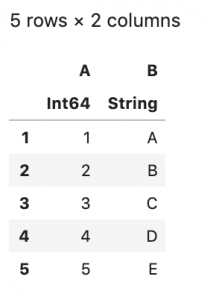 df = DataFrame(A = 1:5, B = ["A", "B", "C", "D", "E"])