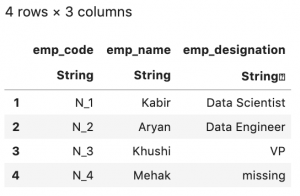 employee_df = DataFrame(emp_code = ["N_1", "N_2", "N_3", "N_4"],