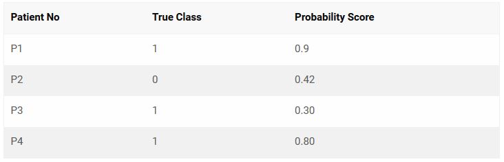 Let’s consider the following 4 observation’s actual class and predicted probability scores.
