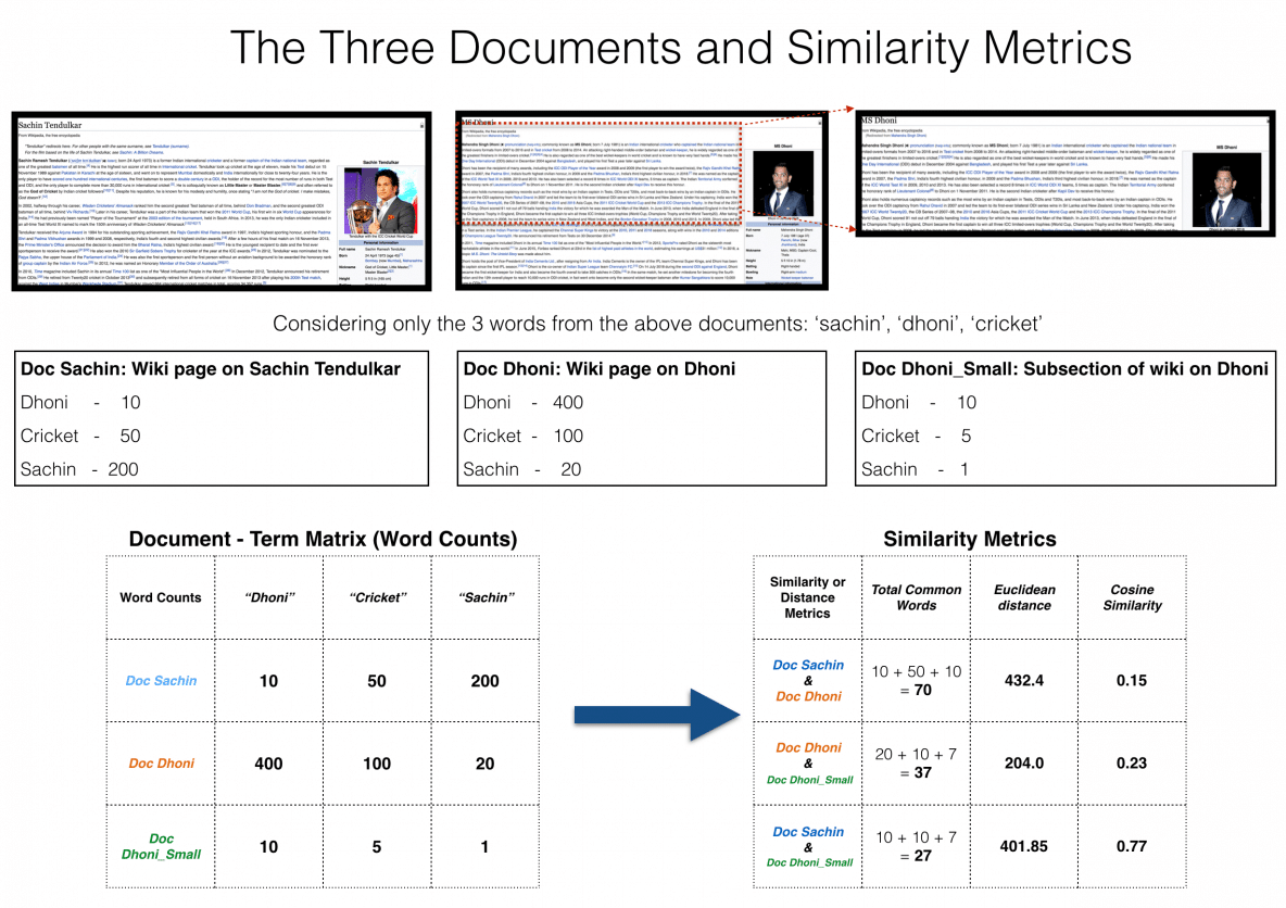 For ease of understanding, let’s consider only the top 3 common words between the documents: ‘Dhoni’, ‘Sachin’ and ‘Cricket’.