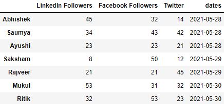 df['dates'] = pd.to_datetime(df.dates)Q4.2: Who gained the maximum number of Twitter followers on Friday?