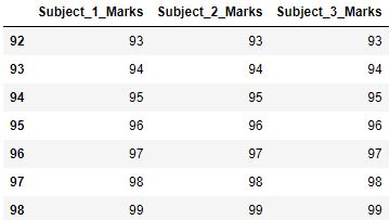 Head function returns the dataframe or series with the first few rows (by default 5). To perform this function, chain .head() function to the dataframe or series.