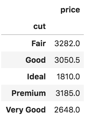 price = df[['cut', 'price']].groupby('cut').median().round(2)