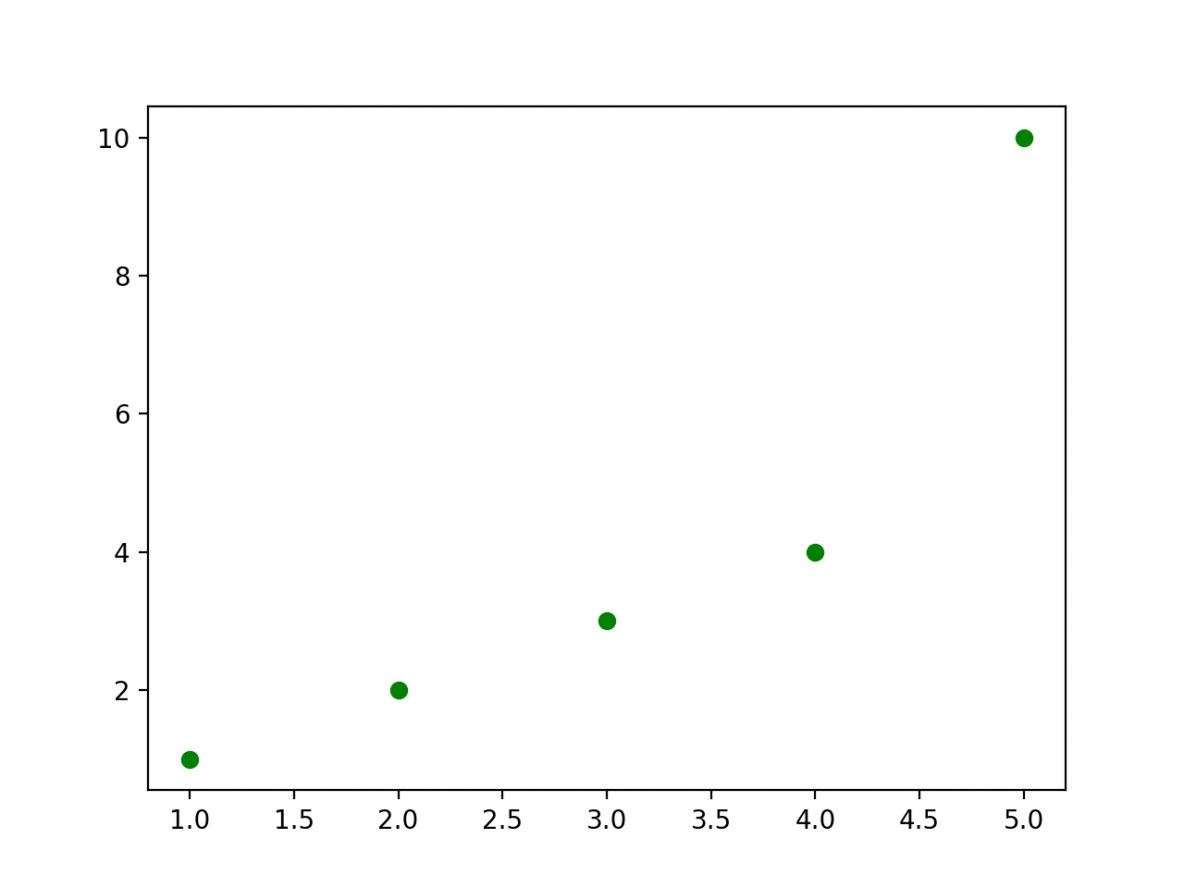 ax1.plot([1,2,3,4,5], [1,2,3,4,10], 'go')  # greendots