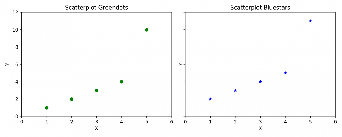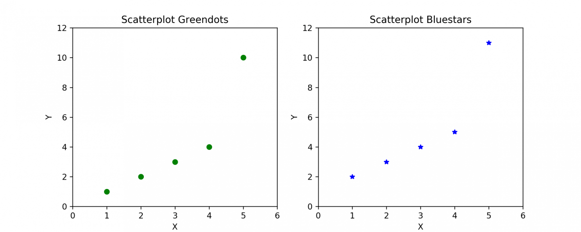 Suppose, I want to draw our two sets of points (green rounds and blue stars) in two separate plots side-by-side instead of the same plot. How would you do that?