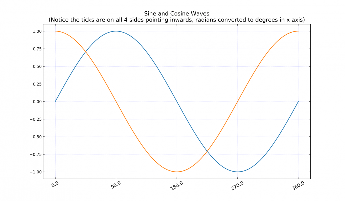 This second axes will have the Y-axis on the right activated and shares the same x-axis as the original ax. Then, whatever you draw using this second axes will be referenced to the secondary y-axis. The remaining job is to just color the axis and tick labels to match the color of the lines.
