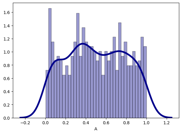 Alternately, you can visualize the distribution with a combination of histogram and density plot. This is straightforward to create with seaborn.