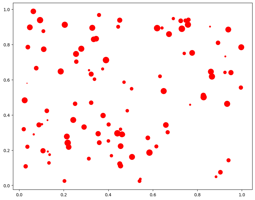 In python matplotlib, the scatterplot can be created using the pyplot.plot() or the pyplot.scatter(). Using these functions, you can add more feature to your scatter plot, like changing the size, color or shape of the points.