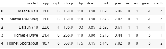 url = 'https://gist.githubusercontent.com/seankross/a412dfbd88b3db70b74b/raw/5f23f993cd87c283ce766e7ac6b329ee7cc2e1d1/mtcars.csv'