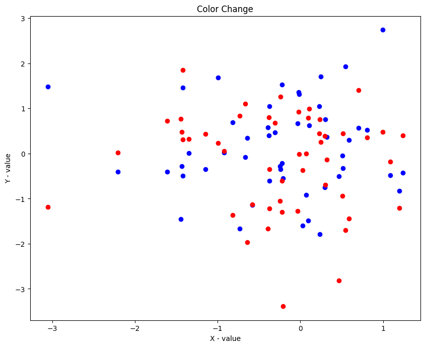 If you want the color of the points to vary depending on the value of Y (or another variable of same size), specify the color each dot should take using the c argument.