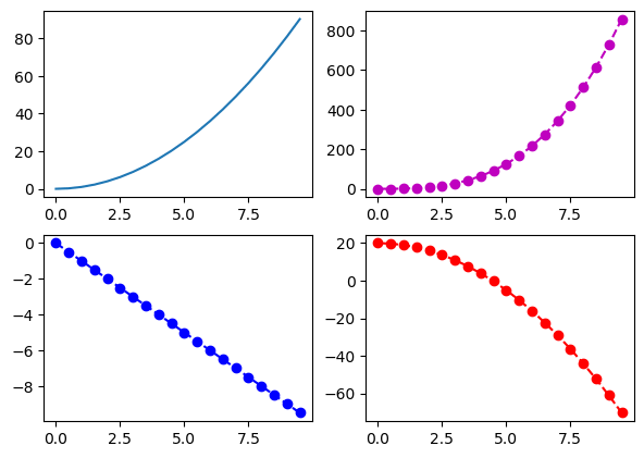 Of these plt.subplots in the most commonly used. However, the first two approaches are more flexible and allows you to control where exactly on the figure each plot should appear.