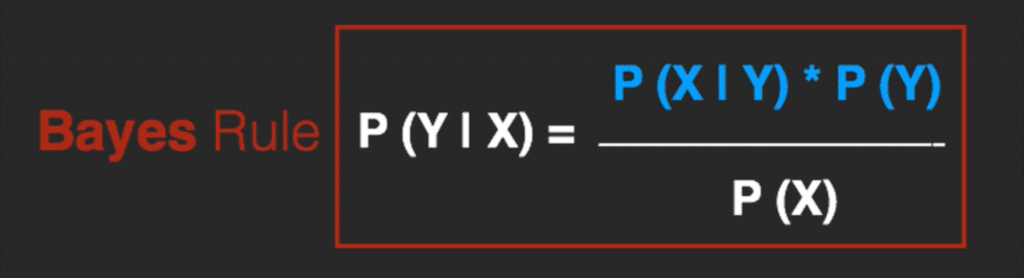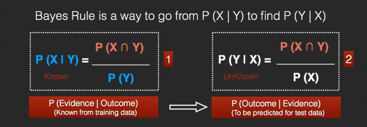 The Bayes Rule is a way of going from P(X|Y), known from the training dataset, to find P(Y|X).