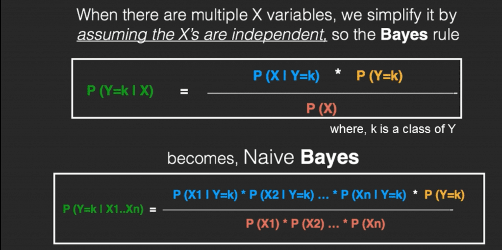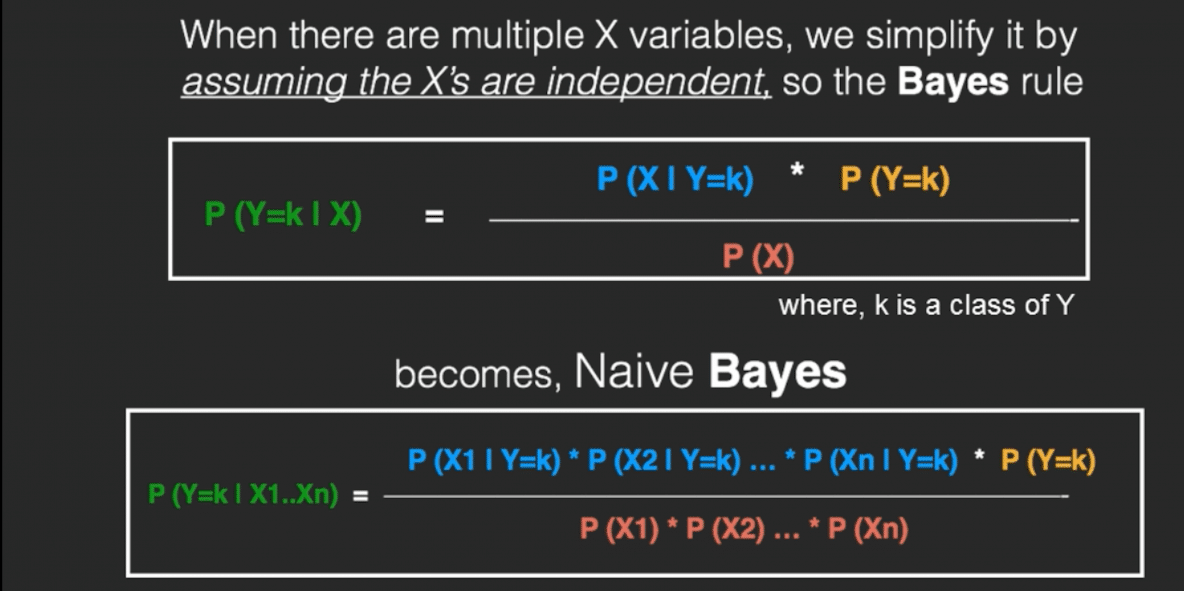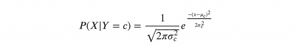 If you assume the X’s follow a Normal (aka Gaussian) Distribution, which is fairly common, we substitute the corresponding probability density of a Normal distribution and call it the Gaussian Naive Bayes.