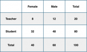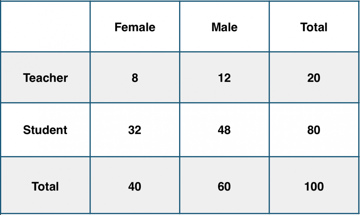 Consider a school with a total population of 100 persons. These 100 persons can be seen either as ‘Students’ and ‘Teachers’ or as a population of ‘Males’ and ‘Females’.