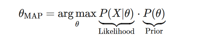 \theta_{\text{MAP}} = \underset{\theta}{\arg\max} \, P(\theta|X)