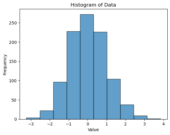 plt.hist(data, bins=10, edgecolor="k", alpha=0.7)