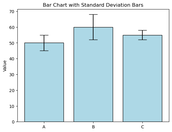 Overlaying the standard deviation on bar charts to showcase the variability of multiple datasets.
