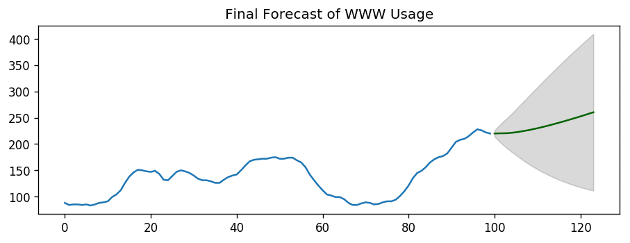 fitted, confint = smodel.predict(n_periods=n_periods, return_conf_int=True)